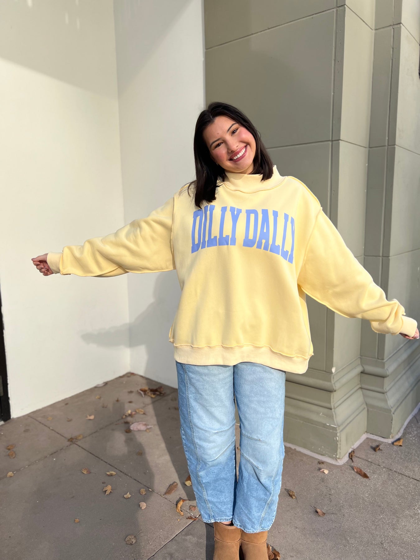 Dilly Dally Mock Neck Sweatshirt - Yellow