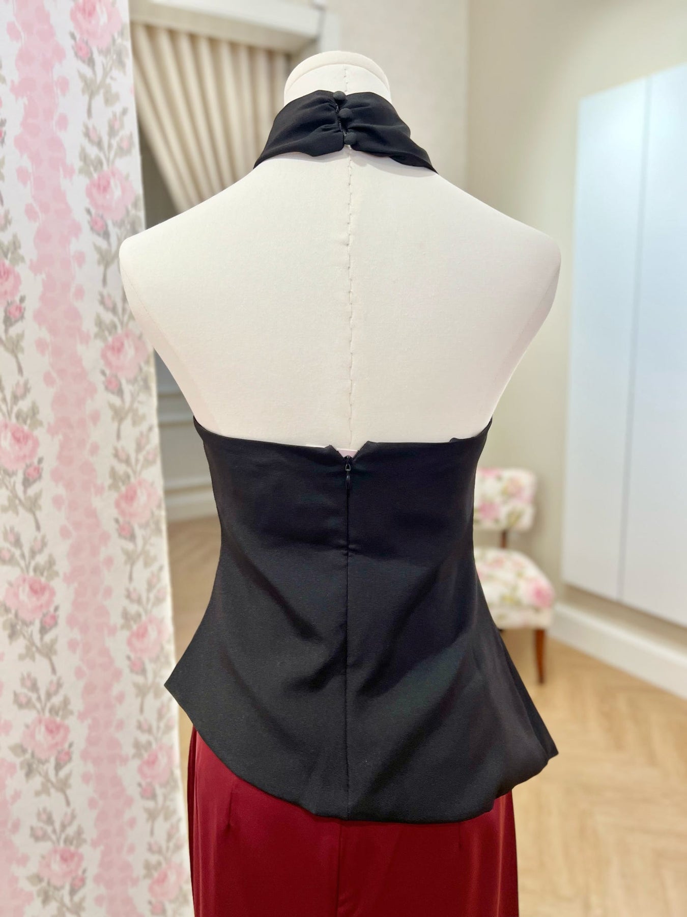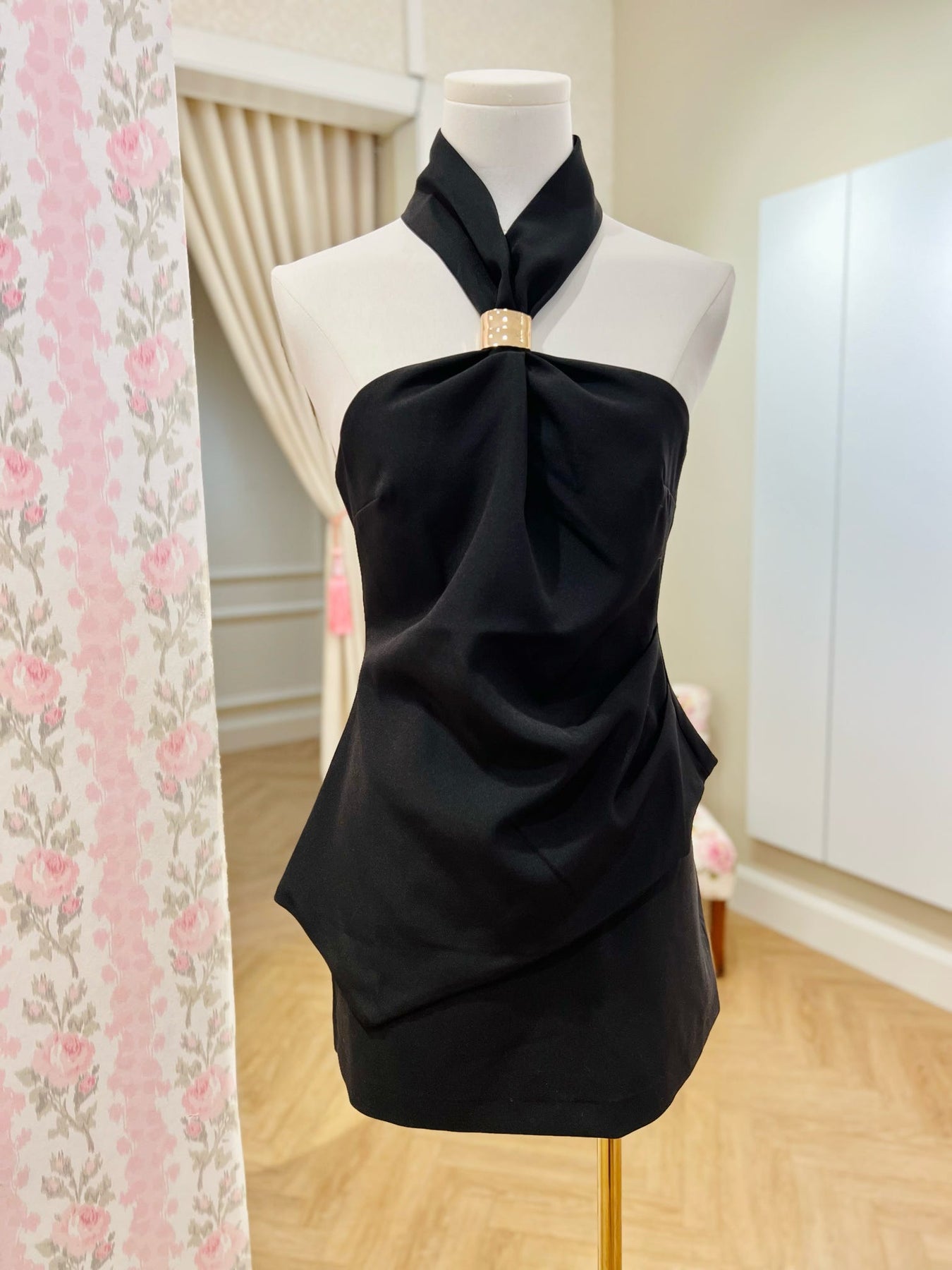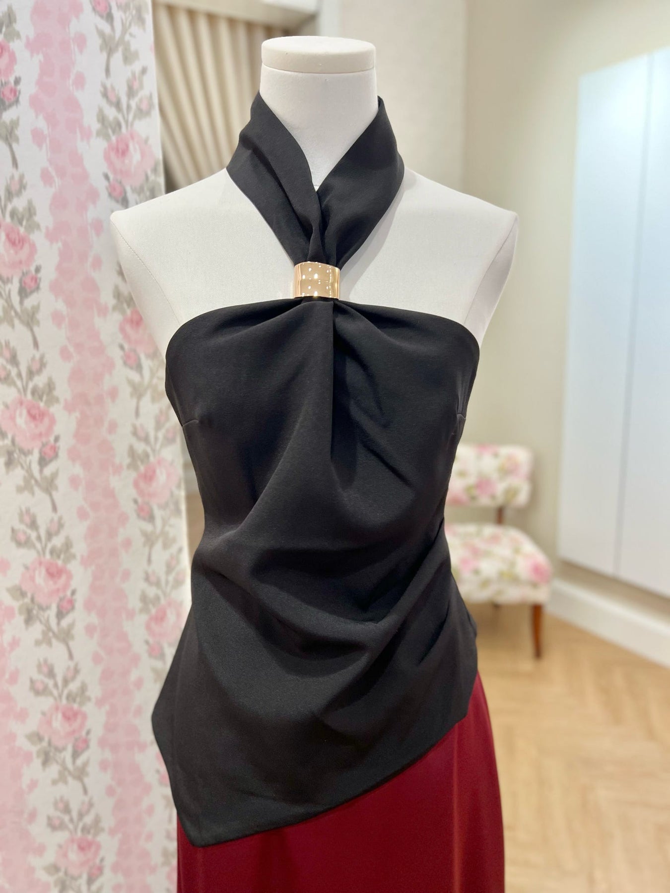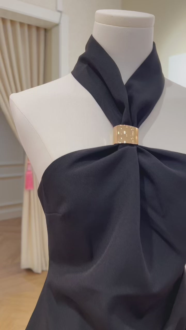 Asymmetrical halter top with gold clasp
