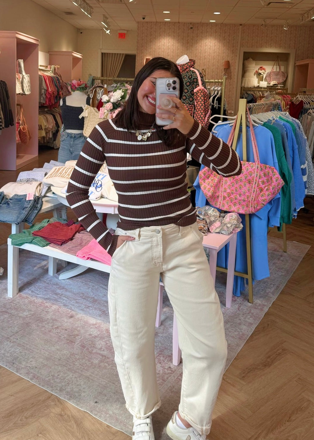 [{"id":51265723728103,"title":"SMALL","option1":"SMALL","option2":null,"option3":null,"sku":"020409699575","requires_shipping":true,"taxable":true,"featured_image":null,"available":true,"name":"Brown Stripe Mock Neck Top - SMALL","public_title":"SMALL","options":["SMALL"],"price":1895,"weight":198,"compare_at_price":null,"inventory_quantity":2,"inventory_management":"shopify","inventory_policy":"deny","barcode":null,"requires_selling_plan":false,"selling_plan_allocations":[]},{"id":51265723760871,"title":"MEDIUM","option1":"MEDIUM","option2":null,"option3":null,"sku":"020404695640","requires_shipping":true,"taxable":true,"featured_image":null,"available":true,"name":"Brown Stripe Mock Neck Top - MEDIUM","public_title":"MEDIUM","options":["MEDIUM"],"price":1895,"weight":198,"compare_at_price":null,"inventory_quantity":3,"inventory_management":"shopify","inventory_policy":"deny","barcode":null,"requires_selling_plan":false,"selling_plan_allocations":[]},{"id":51265723793639,"title":"LARGE","option1":"LARGE","option2":null,"option3":null,"sku":"020403915244","requires_shipping":true,"taxable":true,"featured_image":null,"available":true,"name":"Brown Stripe Mock Neck Top - LARGE","public_title":"LARGE","options":["LARGE"],"price":1895,"weight":198,"compare_at_price":null,"inventory_quantity":2,"inventory_management":"shopify","inventory_policy":"deny","barcode":null,"requires_selling_plan":false,"selling_plan_allocations":[]}]