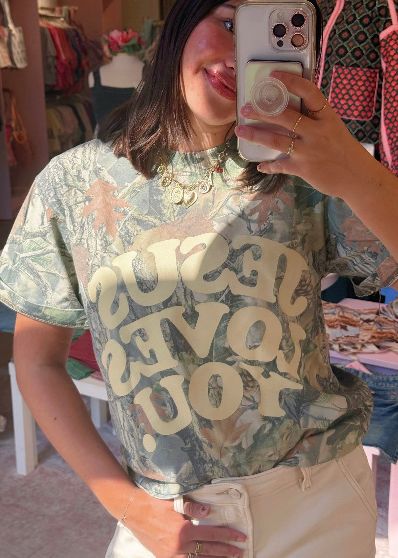 [{"id":51393040056551,"title":"SMALL","option1":"SMALL","option2":null,"option3":null,"sku":"020401840272","requires_shipping":true,"taxable":true,"featured_image":null,"available":true,"name":"Camo \"Jesus Loves You\" T-shirt - SMALL","public_title":"SMALL","options":["SMALL"],"price":4295,"weight":283,"compare_at_price":null,"inventory_quantity":2,"inventory_management":"shopify","inventory_policy":"deny","barcode":null,"requires_selling_plan":false,"selling_plan_allocations":[]},{"id":51393040089319,"title":"MEDIUM","option1":"MEDIUM","option2":null,"option3":null,"sku":"020403554474","requires_shipping":true,"taxable":true,"featured_image":null,"available":true,"name":"Camo \"Jesus Loves You\" T-shirt - MEDIUM","public_title":"MEDIUM","options":["MEDIUM"],"price":4295,"weight":283,"compare_at_price":null,"inventory_quantity":4,"inventory_management":"shopify","inventory_policy":"deny","barcode":null,"requires_selling_plan":false,"selling_plan_allocations":[]},{"id":51393040122087,"title":"LARGE","option1":"LARGE","option2":null,"option3":null,"sku":"020401200243","requires_shipping":true,"taxable":true,"featured_image":null,"available":true,"name":"Camo \"Jesus Loves You\" T-shirt - LARGE","public_title":"LARGE","options":["LARGE"],"price":4295,"weight":283,"compare_at_price":null,"inventory_quantity":3,"inventory_management":"shopify","inventory_policy":"deny","barcode":null,"requires_selling_plan":false,"selling_plan_allocations":[]},{"id":51393040154855,"title":"XL","option1":"XL","option2":null,"option3":null,"sku":"020403278394","requires_shipping":true,"taxable":true,"featured_image":null,"available":true,"name":"Camo \"Jesus Loves You\" T-shirt - XL","public_title":"XL","options":["XL"],"price":4295,"weight":283,"compare_at_price":null,"inventory_quantity":2,"inventory_management":"shopify","inventory_policy":"deny","barcode":null,"requires_selling_plan":false,"selling_plan_allocations":[]}]