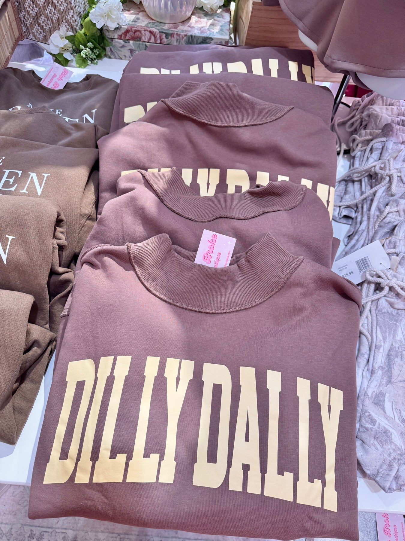 Dilly Dally Mock Neck Sweatshirt - Brown/Yellow