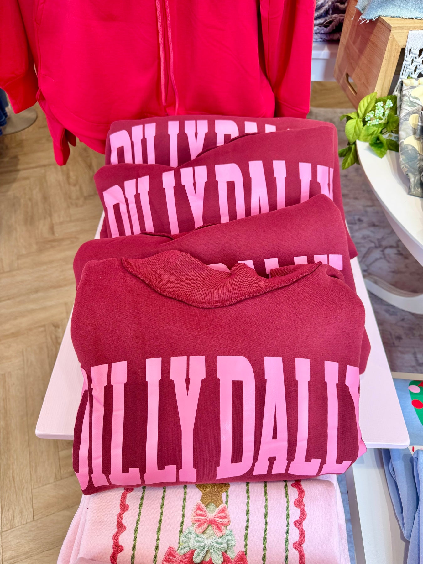 Dilly Dally Mock Neck Sweatshirt - Burgundy/Pink