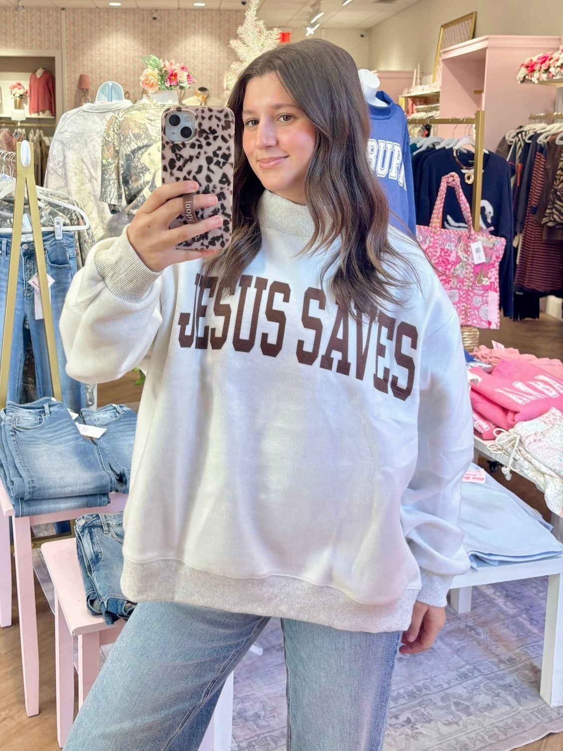 Jesus Saves Reversible Mock Neck Sweatshirt