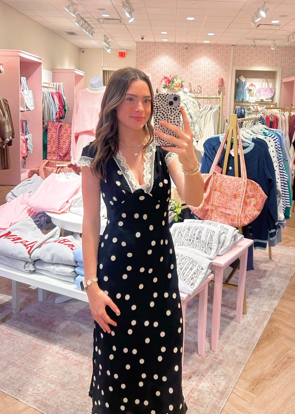 Polka Dot Midi Dress - Black