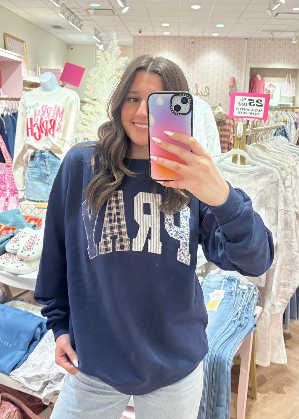 [{"id":51647897075943,"title":"SMALL","option1":"SMALL","option2":null,"option3":null,"sku":"162383779260","requires_shipping":true,"taxable":true,"featured_image":null,"available":true,"name":"PRAY Applique Sweatshirt - Navy - SMALL","public_title":"SMALL","options":["SMALL"],"price":4495,"weight":907,"compare_at_price":null,"inventory_quantity":1,"inventory_management":"shopify","inventory_policy":"deny","barcode":null,"requires_selling_plan":false,"selling_plan_allocations":[]},{"id":51647897108711,"title":"MEDIUM","option1":"MEDIUM","option2":null,"option3":null,"sku":"162381056288","requires_shipping":true,"taxable":true,"featured_image":null,"available":false,"name":"PRAY Applique Sweatshirt - Navy - MEDIUM","public_title":"MEDIUM","options":["MEDIUM"],"price":4495,"weight":907,"compare_at_price":null,"inventory_quantity":0,"inventory_management":"shopify","inventory_policy":"deny","barcode":null,"requires_selling_plan":false,"selling_plan_allocations":[]},{"id":51647897141479,"title":"LARGE","option1":"LARGE","option2":null,"option3":null,"sku":"162382555926","requires_shipping":true,"taxable":true,"featured_image":null,"available":false,"name":"PRAY Applique Sweatshirt - Navy - LARGE","public_title":"LARGE","options":["LARGE"],"price":4495,"weight":907,"compare_at_price":null,"inventory_quantity":0,"inventory_management":"shopify","inventory_policy":"deny","barcode":null,"requires_selling_plan":false,"selling_plan_allocations":[]},{"id":51647897174247,"title":"XL","option1":"XL","option2":null,"option3":null,"sku":"162382730866","requires_shipping":true,"taxable":true,"featured_image":null,"available":true,"name":"PRAY Applique Sweatshirt - Navy - XL","public_title":"XL","options":["XL"],"price":4495,"weight":907,"compare_at_price":null,"inventory_quantity":1,"inventory_management":"shopify","inventory_policy":"deny","barcode":null,"requires_selling_plan":false,"selling_plan_allocations":[]}]
