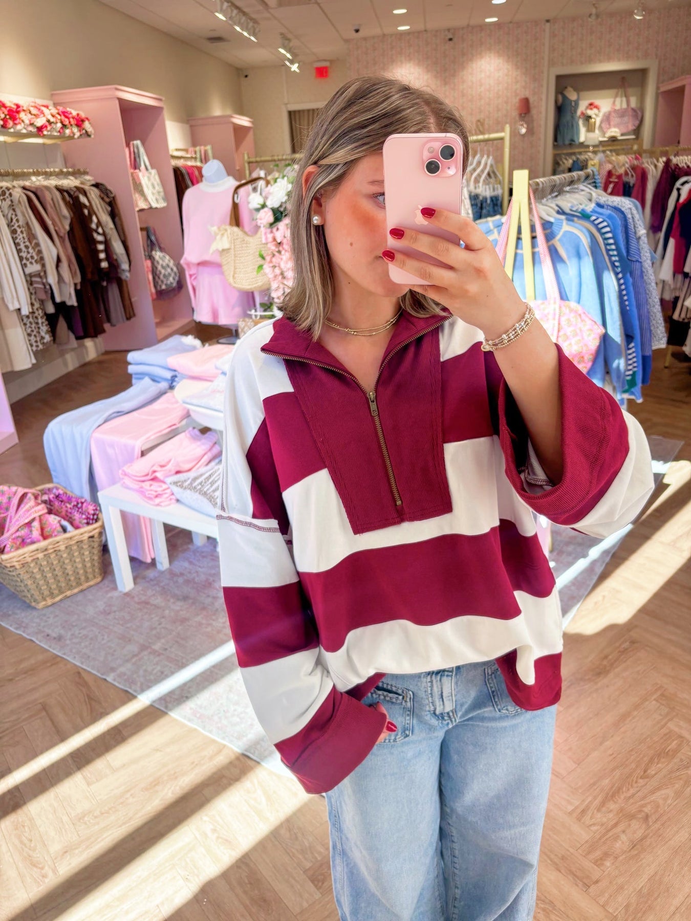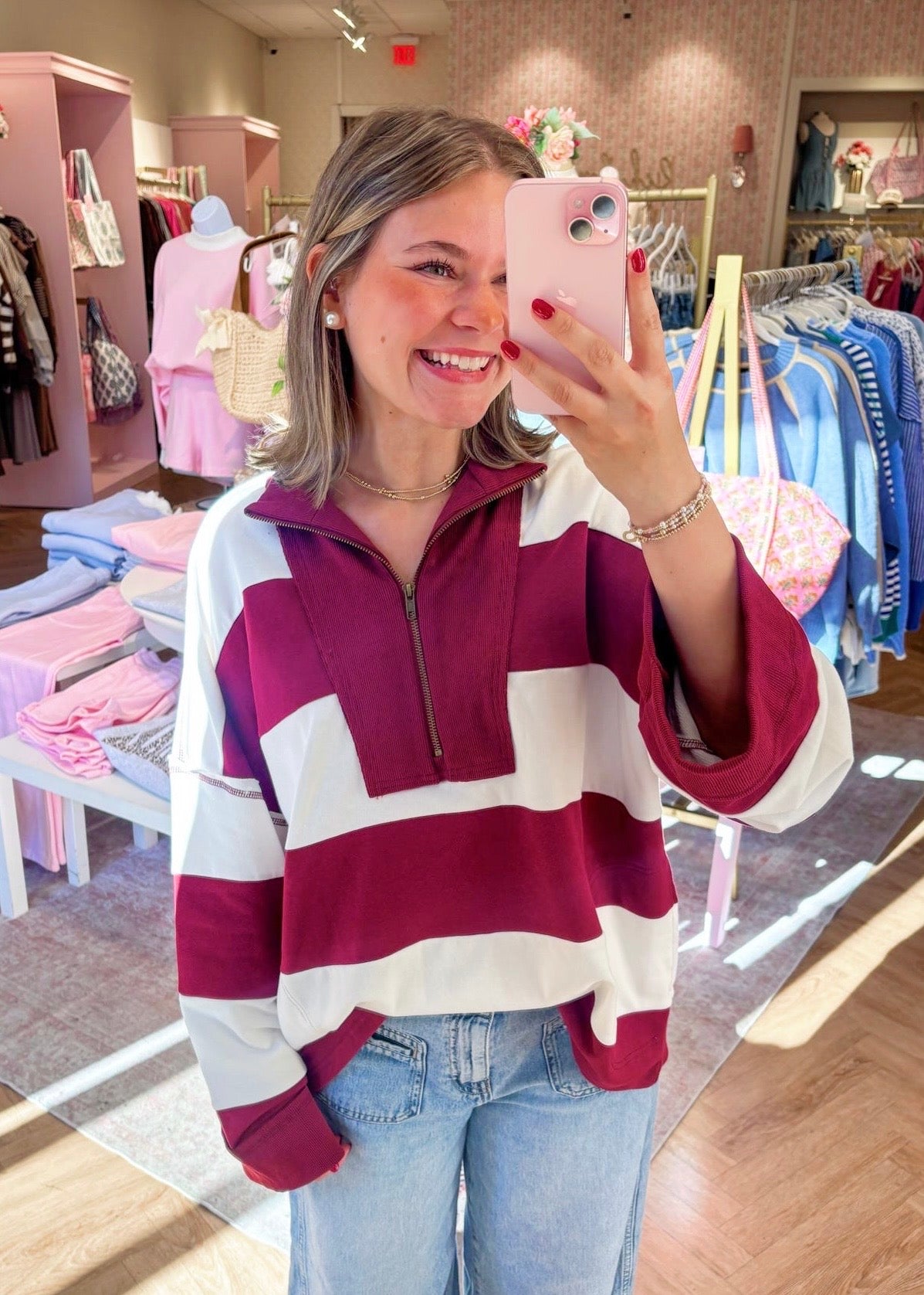 Rugby stripe sweater - burgundy/white