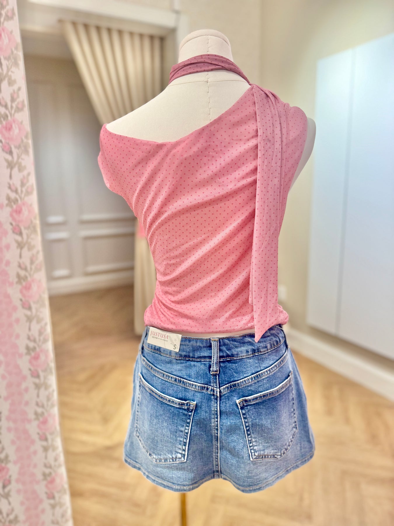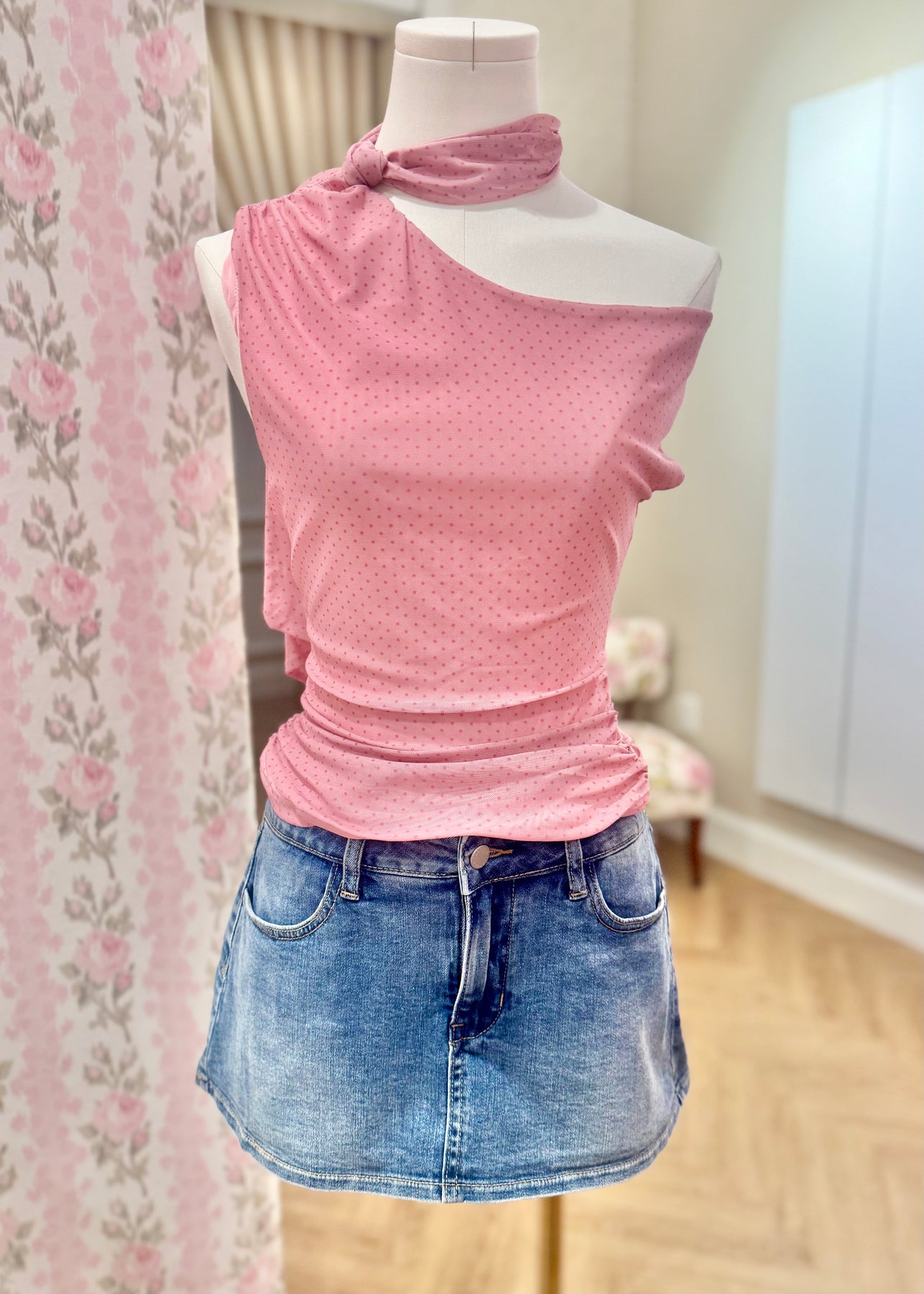 Scarf Detail Asymmetrical Shoulder Top - PINK