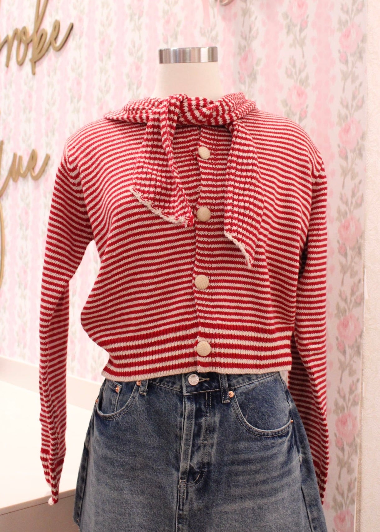 Together Forever Stripe Cardigan - Burgundy/Cream