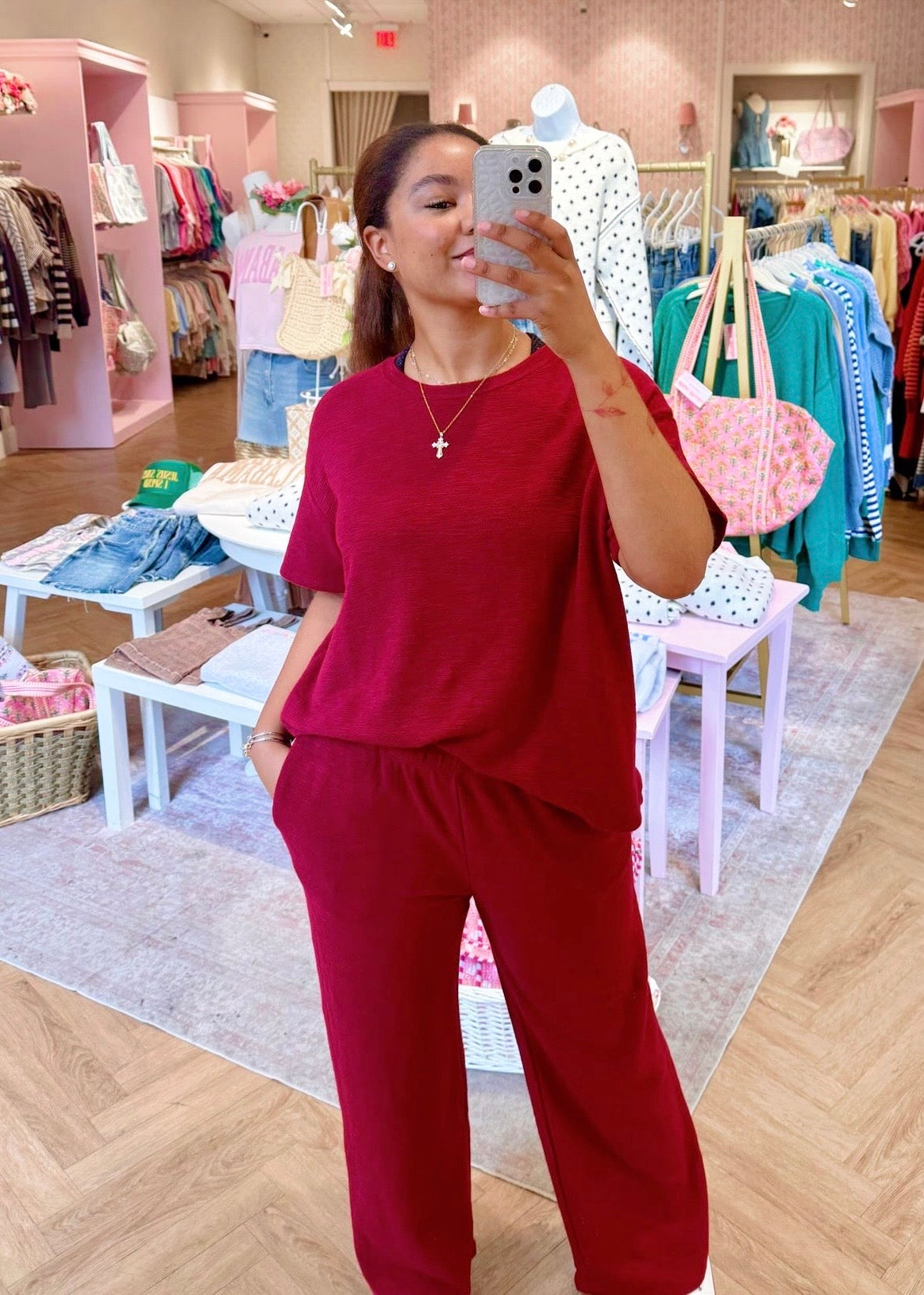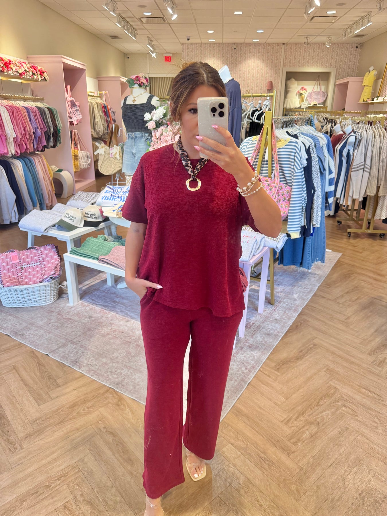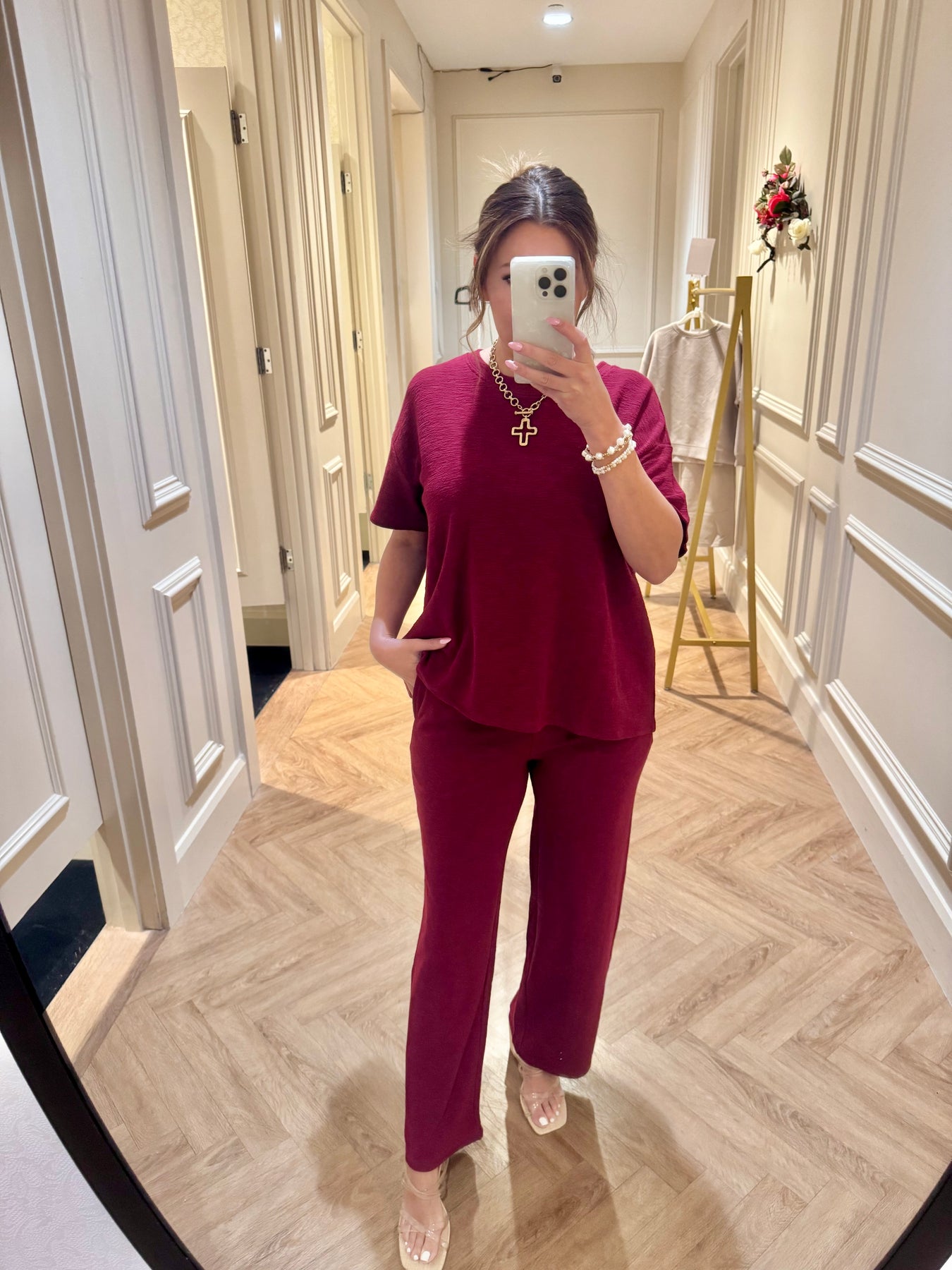 Luna Dolmen Sleeve Pant Set - Burgundy S-XL