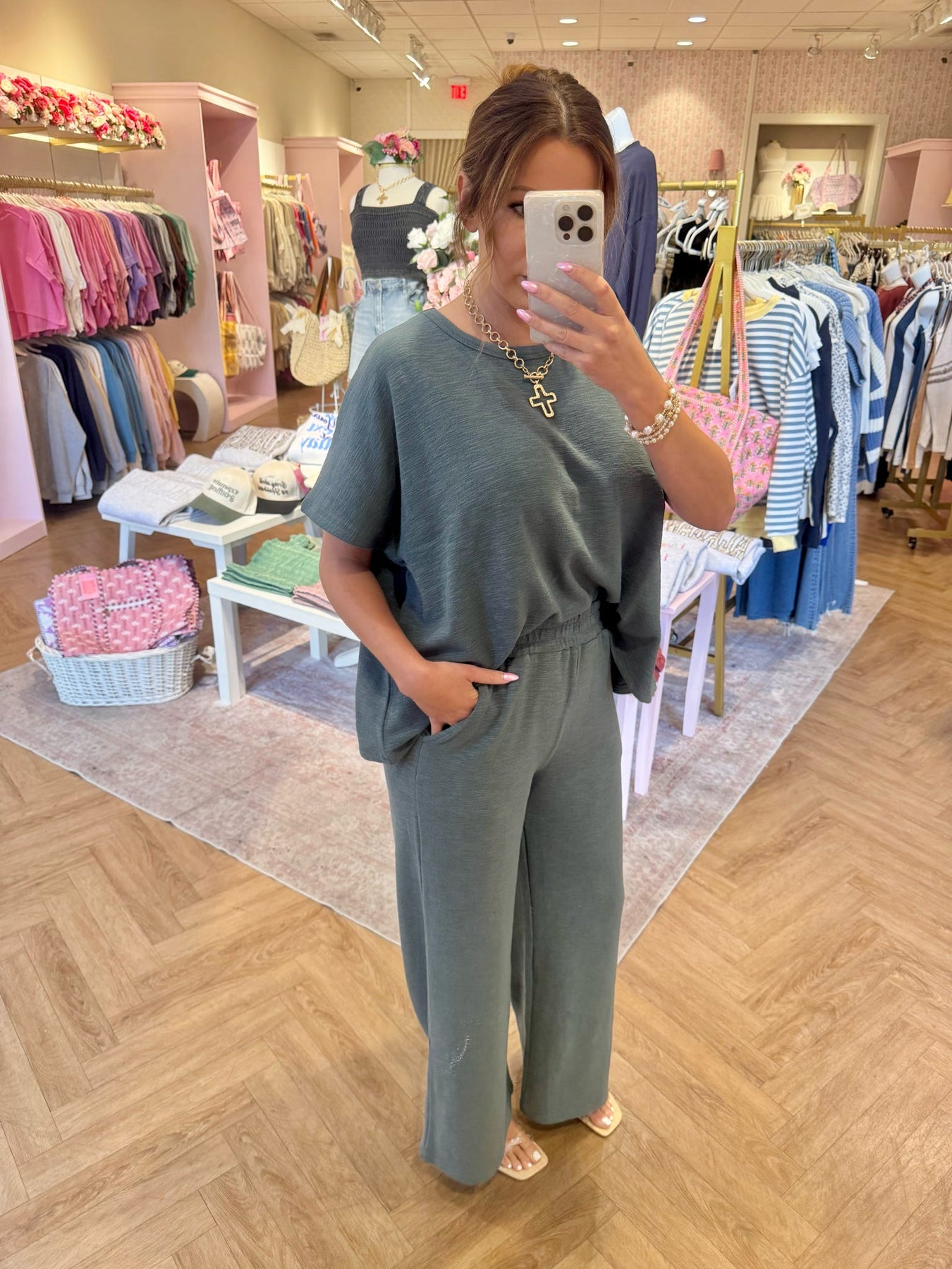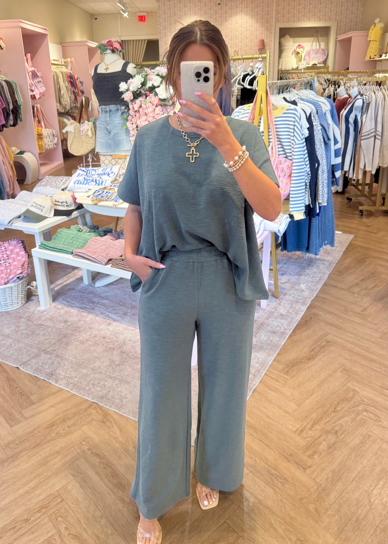 Luna Dolmen Sleeve Pant Set - Jade