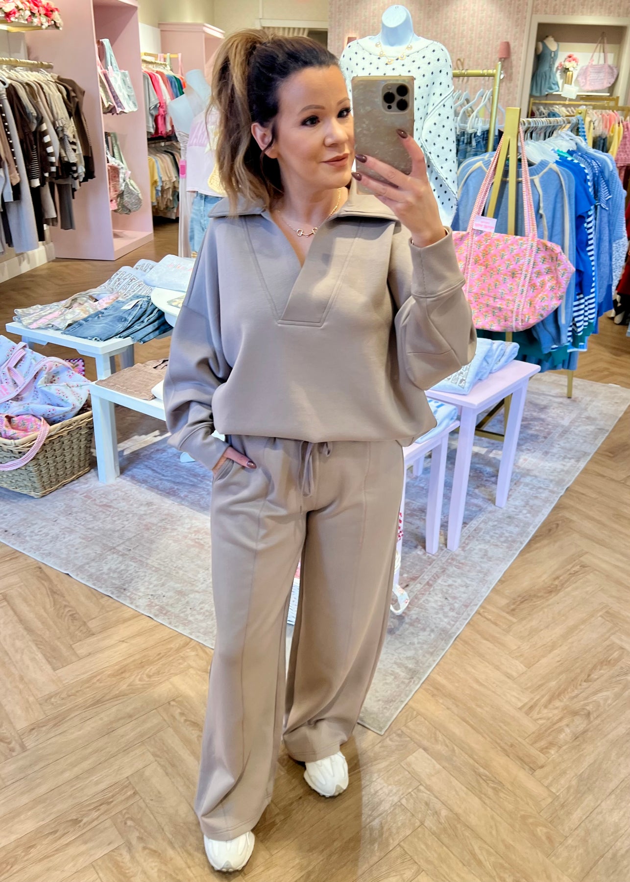 Scuba collared pullover & drawstring pant set