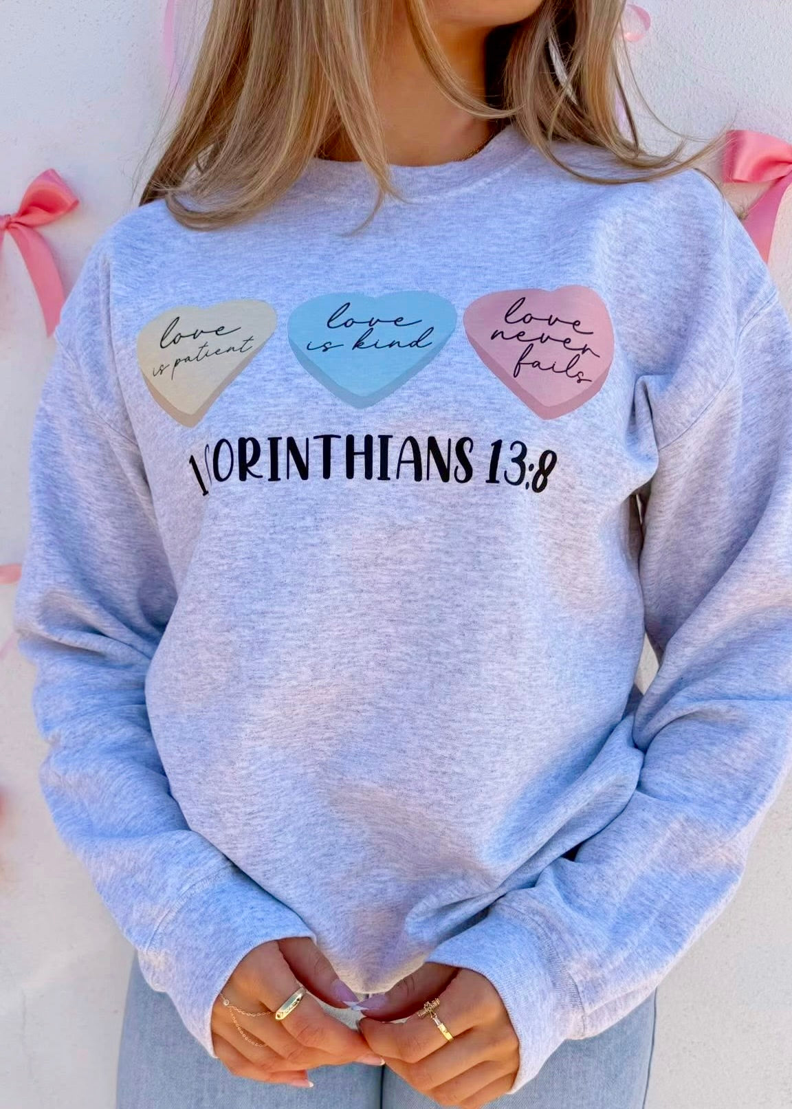[{"id":51741968597223,"title":"SMALL","option1":"SMALL","option2":null,"option3":null,"sku":"020404928380","requires_shipping":true,"taxable":true,"featured_image":null,"available":true,"name":"1 Corinthians 13:8 Sweatshirt - SMALL","public_title":"SMALL","options":["SMALL"],"price":4295,"weight":907,"compare_at_price":null,"inventory_quantity":1,"inventory_management":"shopify","inventory_policy":"deny","barcode":null,"requires_selling_plan":false,"selling_plan_allocations":[]},{"id":51741968629991,"title":"MEDIUM","option1":"MEDIUM","option2":null,"option3":null,"sku":"020402514622","requires_shipping":true,"taxable":true,"featured_image":null,"available":true,"name":"1 Corinthians 13:8 Sweatshirt - MEDIUM","public_title":"MEDIUM","options":["MEDIUM"],"price":4295,"weight":907,"compare_at_price":null,"inventory_quantity":1,"inventory_management":"shopify","inventory_policy":"deny","barcode":null,"requires_selling_plan":false,"selling_plan_allocations":[]},{"id":51741968662759,"title":"LARGE","option1":"LARGE","option2":null,"option3":null,"sku":"020406769561","requires_shipping":true,"taxable":true,"featured_image":null,"available":false,"name":"1 Corinthians 13:8 Sweatshirt - LARGE","public_title":"LARGE","options":["LARGE"],"price":4295,"weight":907,"compare_at_price":null,"inventory_quantity":0,"inventory_management":"shopify","inventory_policy":"deny","barcode":null,"requires_selling_plan":false,"selling_plan_allocations":[]},{"id":51741968695527,"title":"XL","option1":"XL","option2":null,"option3":null,"sku":"020403020849","requires_shipping":true,"taxable":true,"featured_image":null,"available":false,"name":"1 Corinthians 13:8 Sweatshirt - XL","public_title":"XL","options":["XL"],"price":4295,"weight":907,"compare_at_price":null,"inventory_quantity":0,"inventory_management":"shopify","inventory_policy":"deny","barcode":null,"requires_selling_plan":false,"selling_plan_allocations":[]}]
